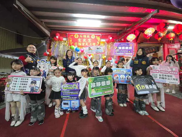 圖文:雲警廣播入宮廟 反詐提醒顧財寶。
