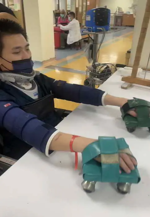 回想孩子治療至今,吳爸爸坦言,兒子車禍重創導致頸椎以下無知覺,在孩子恢復意識轉出加護病房後,全家人知道接下來將有一連串關卡要克服,第一關就是自主呼吸。「我跟孩子說,我們一步一步來,家人都會陪你、支持你。」