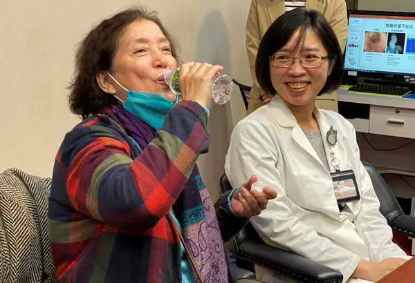 圖二:經治療後,嚴女士(左)目前喝水、進食都無礙。