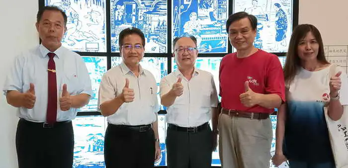 圖二:張德欽社長與梁志忠理事長、林明洲副館長、工藝中心副主任江瑞燐等人共襄盛舉。