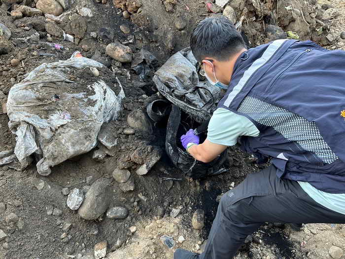 環保局提到,此案在台中地檢署白檢察官指揮保七總隊第三大隊、行政院環境部環境管理署及環保局等機關成立專案小組,不斷抽絲剝繭循線溯源,自去年11月底發動搜索行動,查獲涉案環保公司及連姓主嫌等3人,並查扣曳引車2部、半拖車5部、挖土機2部、大貨車1部及自小客車2部等相關證物。