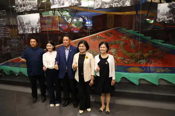 雖然大龍旗本尊仍在修復中,這次特展展出大龍旗及台灣的刺繡技法及老照片雖然大龍旗本尊仍在修復中,這次特展展出大龍旗及台灣的刺繡技法及老照片
