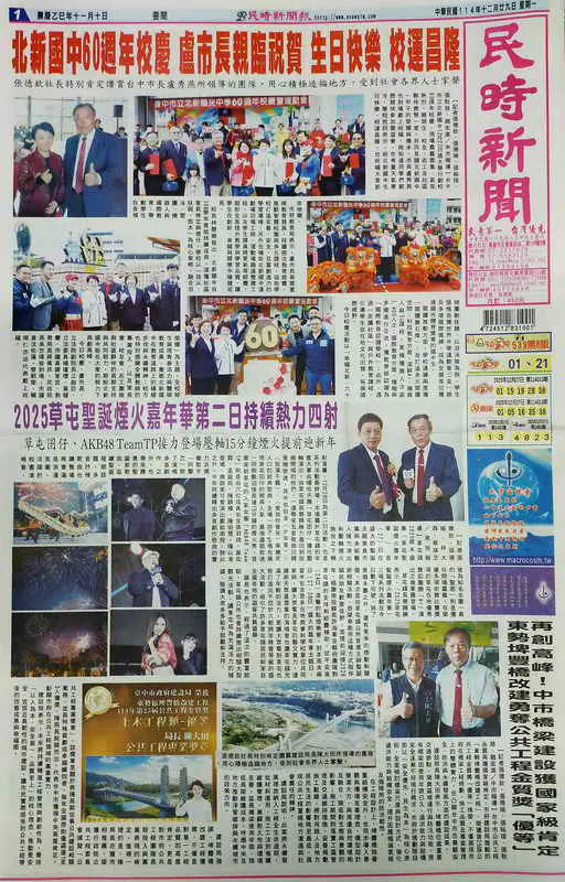 圖文:2025草屯聖誕煙火嘉年華第二日持續熱力四射 草屯囝仔、AKB48 TeamTP接力登場壓軸15分鐘煙火提前迎新年,張德欽社長特別肯定讚賞草屯鎮長簡賜勝所領導的團隊、用心積極造福地方,受到社會各界人士掌聲。