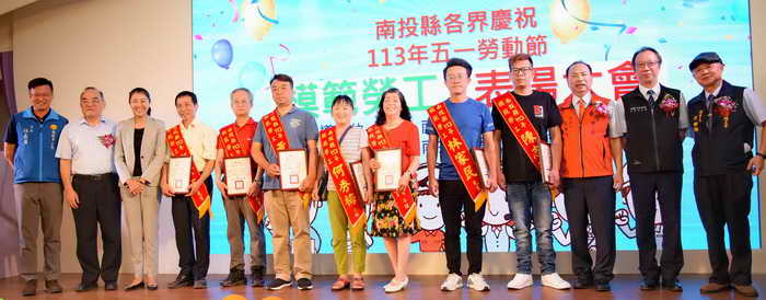 五一勞動節前,南投縣舉辦113年模範勞工表揚大會,表揚產業、企業、職業工會及事業單位推薦的94位模範勞工,會中頒發獎狀並致贈紀念品,許淑華縣長致詞表示,勞動節前,為感謝所有辛苦的勞工,南投縣都會舉辦模範勞工的表揚大會,今年縣府提供補助,也希望把活動辦得更好,讓接受表揚的勞工朋友感到驕傲。