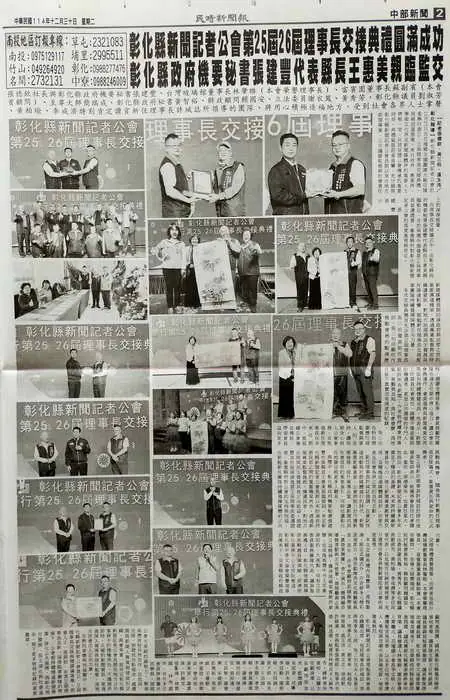 彰化縣新聞記者公會第25屆26屆理事長交接典禮圓滿成功 彰化縣政府機要秘書張建豐代表縣長王惠美親臨監交