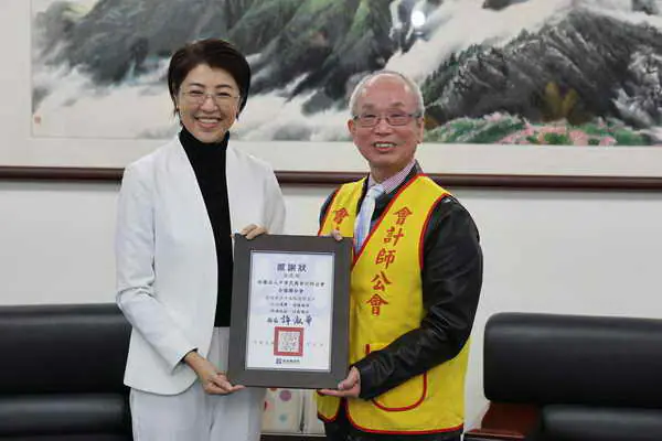 縣長許淑華代表受贈並回贈感謝狀,感謝會計師公會連續這麼多年以實際行動支持南投,值此寒冬之際,這批雪中送炭的白米,將透過縣內食物銀行體系,趕在農曆年前送到需要的家庭手中。