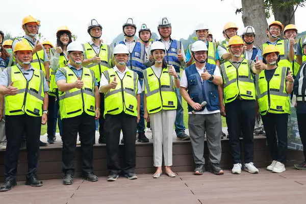 許縣長同時鼓勵施工團隊,除了順利進行工程,更要減輕對生態環境影響,經由友善設計,做好生態保育;由於園區發現石虎棲地,施工團隊妥適處理野狗問題,也用心保護原有樹木及生態環境,樂園的每一塊磚、每一個結構,展現專業技術,同時也是帶動南投觀光發展的重要建設。