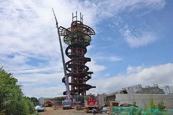 上樑儀式簡單隆重,工程進度近6成的松嶺之星主體景觀塔已現雛形,縣府觀光處指出,松嶺之星園區將設置商店街販售在地農特產及宗教文化等特色商品,高空規劃有360度玻璃帷幕觀景空間,及採透明玻璃步道的戶外觀景平台,要讓遊客體驗凌空感同時考驗膽量,值得一提的是松嶺之星已取得智慧建築與綠建築候選證書,符合許縣長「永續低碳、人文薈萃」的施政方向。。