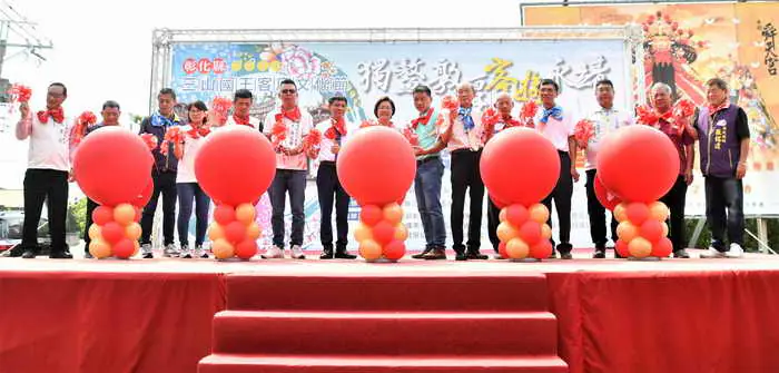 王縣長表示,「彰化福佬客群」大約有40萬人,大多分佈於員林市、永靖鄉、埔心鄉等區域,主要信仰為三山國王,隨著時代變遷,多數人的客語已經比較不流利,但在建築和生活環境上,仍然保有非常多客家文化。特別感謝三山國王客家文化協會創會長潘俊光,把39間三山國王的廟集結在一起,組成彰化三山國王客家文化協會,推廣客家文化。每年由39間宮廟擲筊輪流舉辦文化節活動,凝聚縣內客家鄉親之間的情誼。