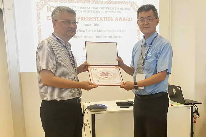 鄧志堅教授表示,針對傳統太陽能板過重的問題,實驗室已成功開發低密度、低厚度、高強度的水泥薄板,該材料可以應用在太陽能板上,達到減重與便利施工的目標。此次「逆向萃智應用於低密度、高強度薄型水泥板的新市場識別」論文,將這項發明透過他所提出的「逆向萃智」進一步探索,研究發現除了與太陽能板結合,還可以廣泛應用到食品容器、浴室襯板、煙幕隔斷牆等多個領域。