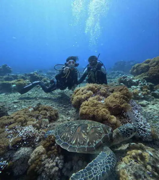 圖二:蕭小姐(左)經3次超顯微手術後,日前參加潛水活動。(病友蕭小姐提供)