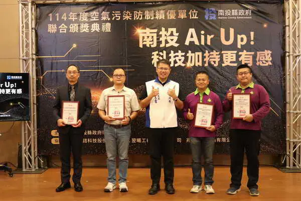 同時,為感謝企業界共同投入環境保護,環保局今年亦頒發「114 年度空氣品質淨化區新增認養單位感謝狀」,表揚環電股份有限公司、富翔營造有限公司、利德工程股份有限公司及鳳杰營造有限公司等四家企業。這些企業認養草屯、埔里及南投多處裸露地綠化計畫,以實際行動支持環保,成為守護空氣品質的重要夥伴。