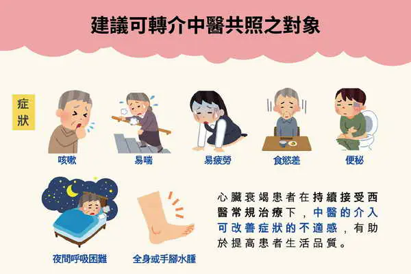 以倪先生為例,他在2021年又因心衰竭急性惡化,心臟功能一度降至心臟射出分率(EF)19%屬重度心衰竭,並合併心房顫動及藥物治療效果不佳,後續接受心房顫動電燒手術穩定心律。雖然急性風險解除,但仍長期受睡眠中斷、活動與上樓梯易喘等問題困擾,生活品質明顯受限。經心衰竭團隊整體評估,並徵得患者同意後,決定導入中醫師團隊加入共同照護。